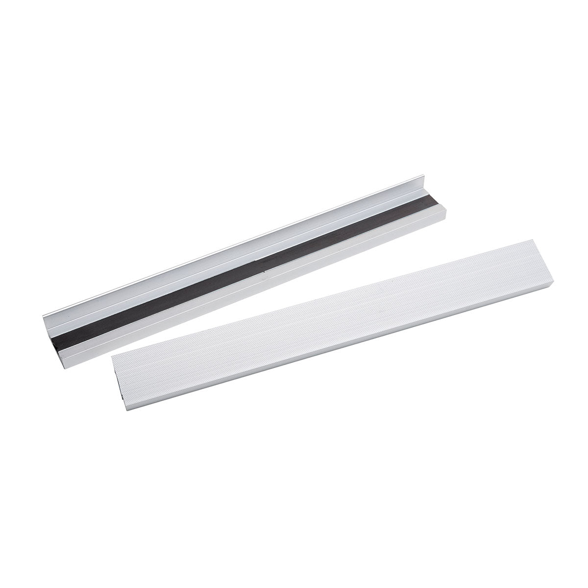 The Yost Vises MA-310 10" magnetic aluminum vise jaw caps attach to and cover a set of 10"-wide serrated vise jaws to shield delicate work from damage. The caps are made of aluminum for durability and have a smooth grooved surface that provides enhanced grip while preventing the clamped item from being marred. The magnetic backing runs the full length of the cap to securely bond it to the front of the vise jaw. Two jaw caps are included.