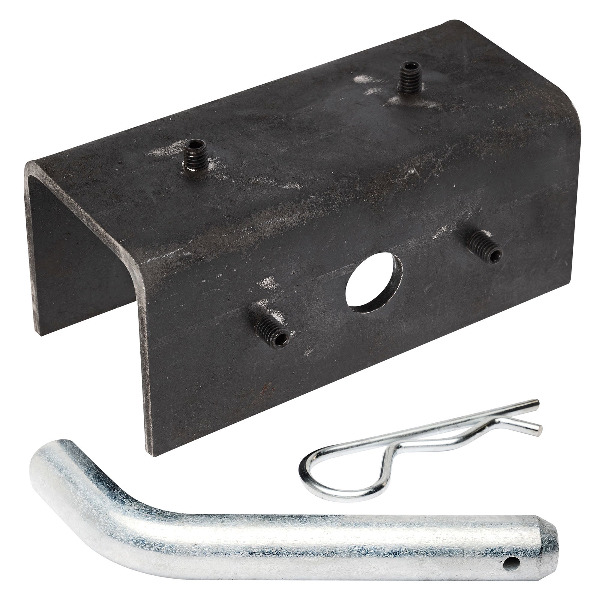 The receiver assembly includes a 5/8-inch clevis pin to lock the mount securely in place and two pairs of set screws to eliminate play, ensuring smooth and rigid operation. Constructed from all-steel materials, this receiver is built for heavy-duty use and offers maximum strength.